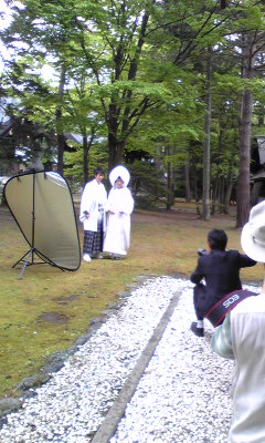 緑豊かな神社での撮影、お天気も気になる所ではありますが自称晴れオンナ、晴れオトコたちの願いが届いたのか撮影の瞬間だけ雨がやんだ!!