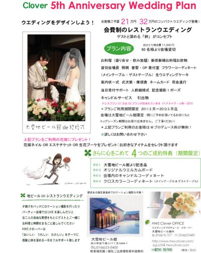 クローバーのウエディングテーマは「愛 感謝 絆」です。