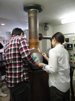 お二人が投入した麦芽のあと、引続き醸造のエース、ヤマちゃんが追加投入。
