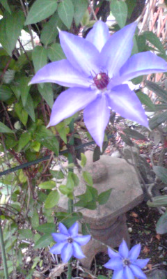 薄いピンクとビロードのような花弁で紫色のテッセン。