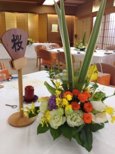 和にこだわってゲストのお席のお花は高さもつけました。